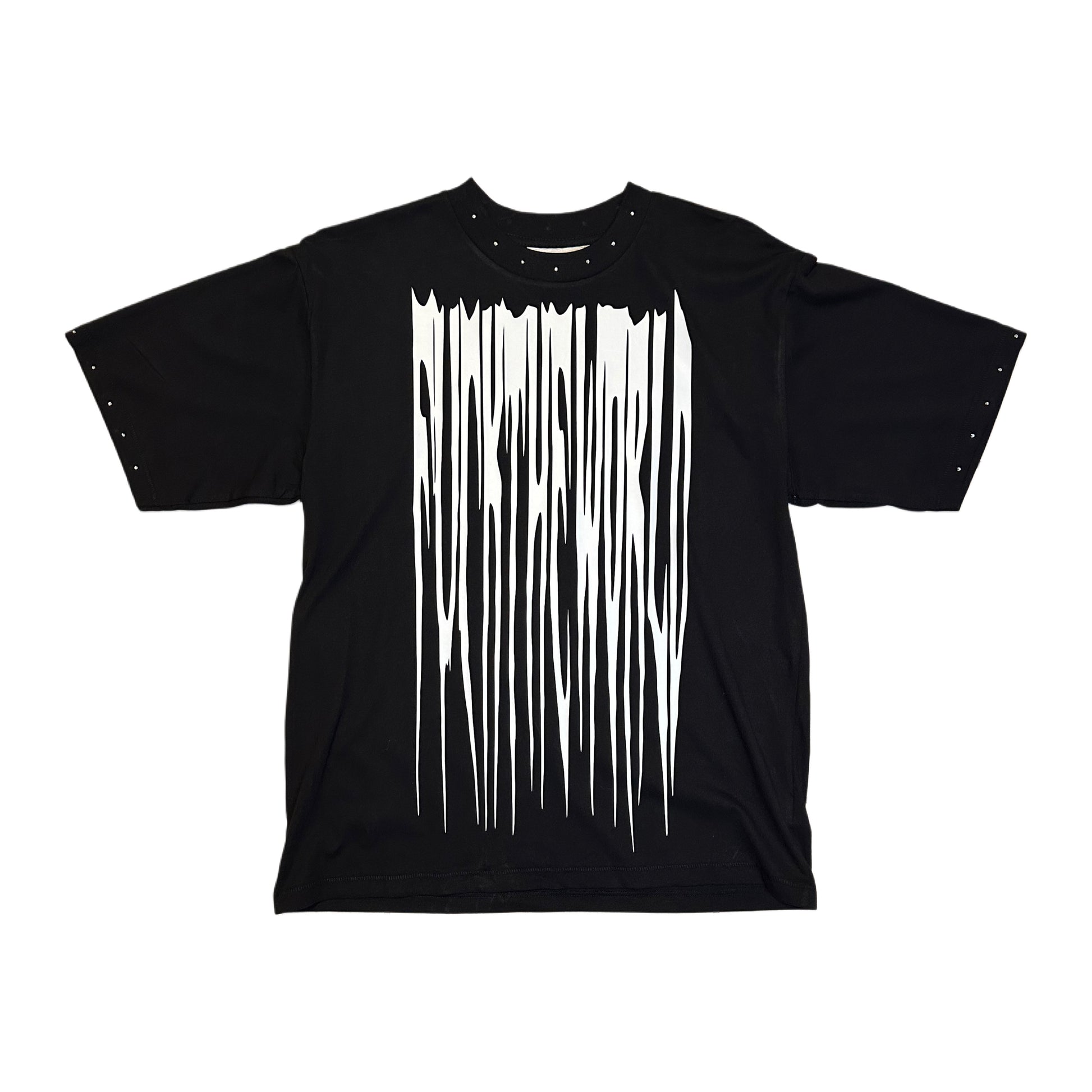 Black FUCKTHEWORLD boxy/oversized tee w/rhinestones (S)