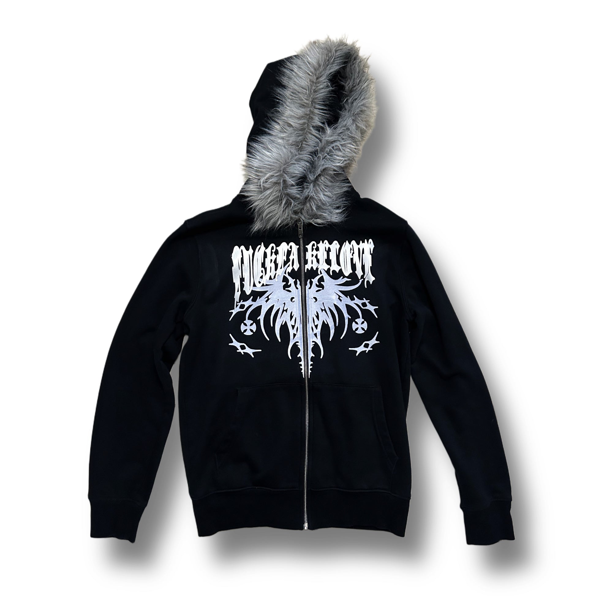 Black “Fuck Fake Love” Fur Hoodie (S)