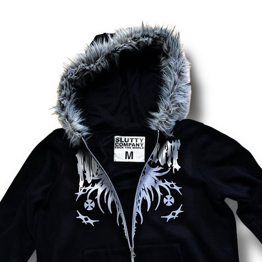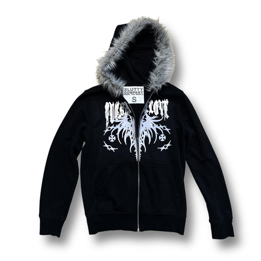 Black “Fuck Fake Love” Fur Hoodie (S)
